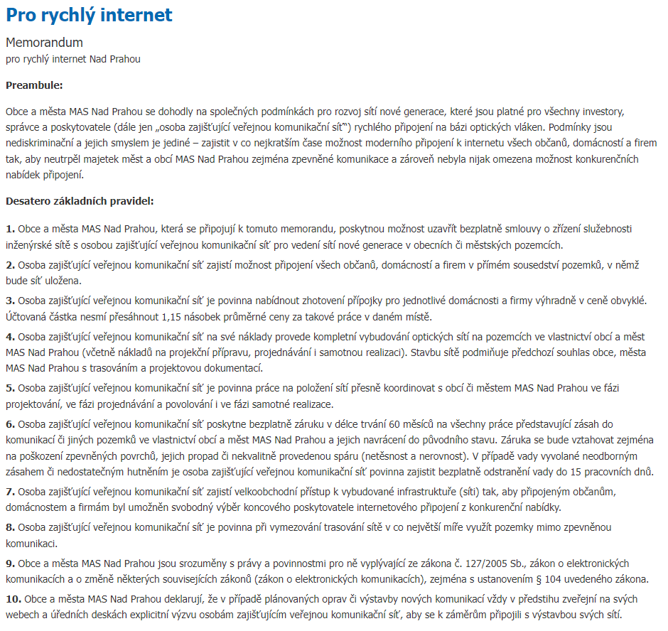 | Memorandum pro rychlý internet |