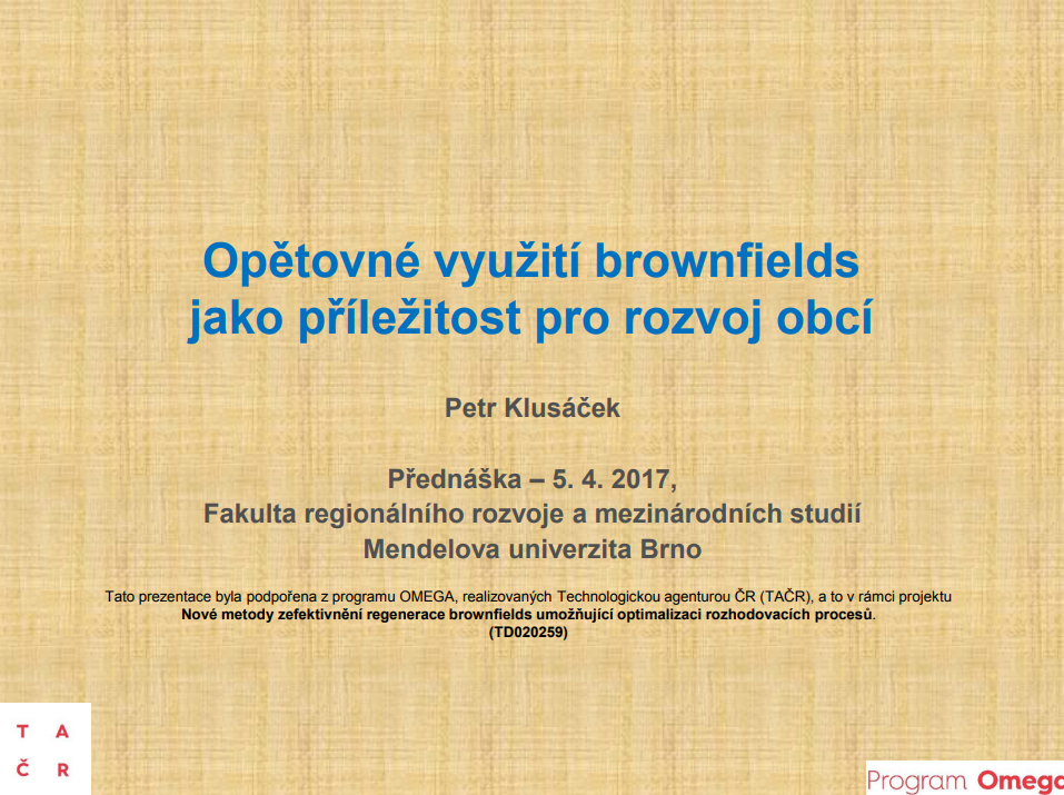 | Opětovné využití brownfieldů jako příležitost pro rozvoj obcí |