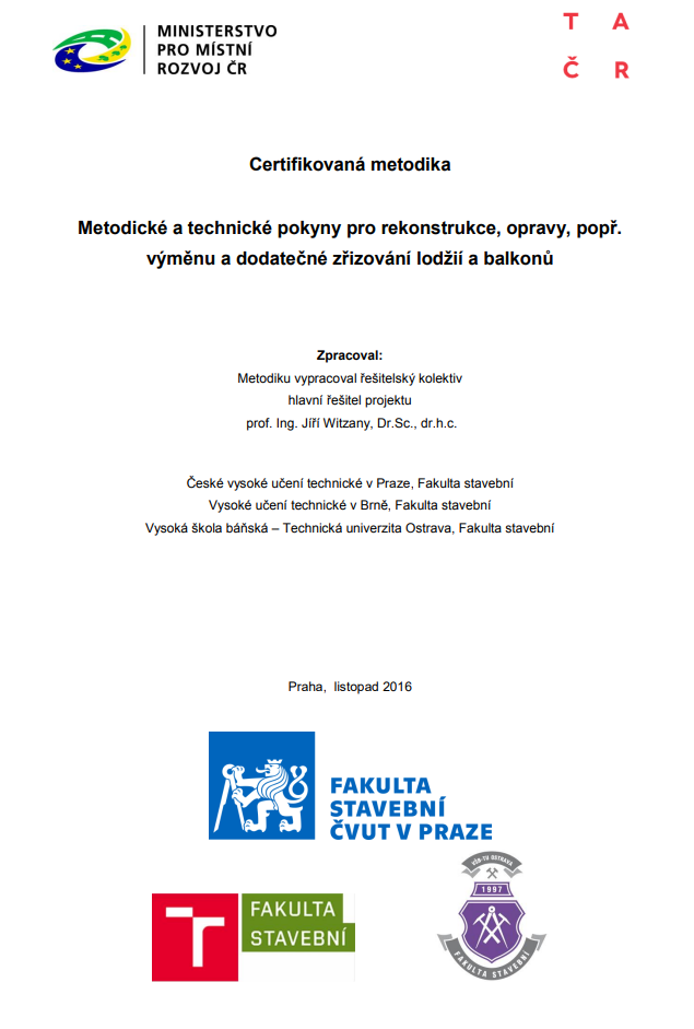 | Metodické a technické pokyny pro rekonstrukce, opravy, popř. výměnu a dodatečné zřizování lodžií a balkonů |